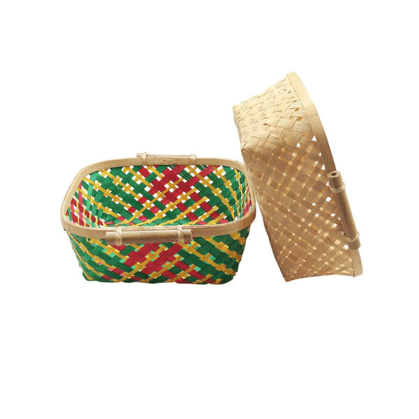 Tecksoi Bamboo Square Basket |Multicolor | Handmade | Set Of 2