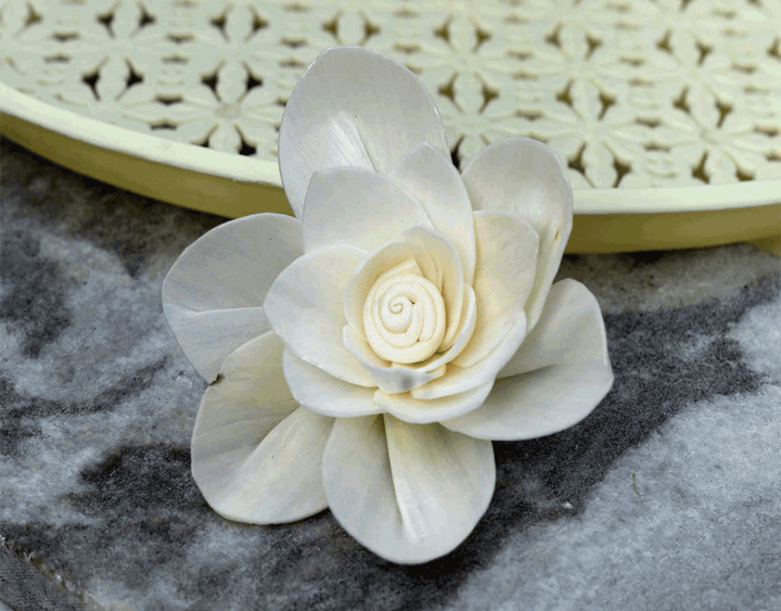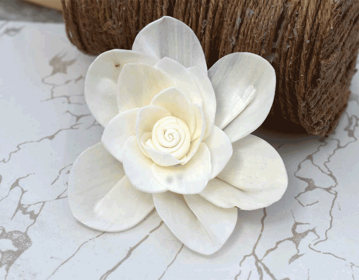 Fleur Sola Wood Flower is a delicately handcrafted flower made from 100% natural sola wood, known for its soft, pliable texture and lifelike appearance. Typically measuring about 8 cm in diameter, these flowers can be dyed or left in their natural off-white color, making them very versatile for various decorative uses.