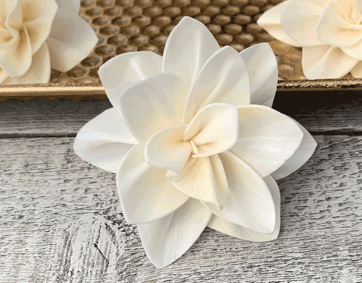Tecksoi Jenella Sola Wood Flower is crafted from the soft pith of the sola plant (Aeschynomene aspera), a renewable marsh plant known for its lightweight and porous wood. This natural ivory-white flower is hand-shaped by skilled artisans, ensuring unique variations that highlight the beauty of every piece. The flower is an excellent alternative to fresh and synthetic flowers, with the added benefit of durability and customization options such as dyeing or scent infusion.
