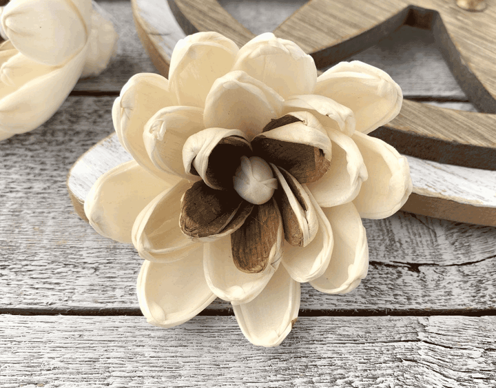 The Tecksoi Joie flower measures approximately 8 cm in diameter and features soft, pliable petals carefully cut and arranged to create a realistic floral shape. Its natural ivory color can be left as is or customized through dyeing and scent infusion, making it versatile for weddings, home decor, gifting, and creative craft projects. The sola wood's porous texture allows these flowers to absorb and diffuse essential oils, making them an excellent choice for aromatic displays.