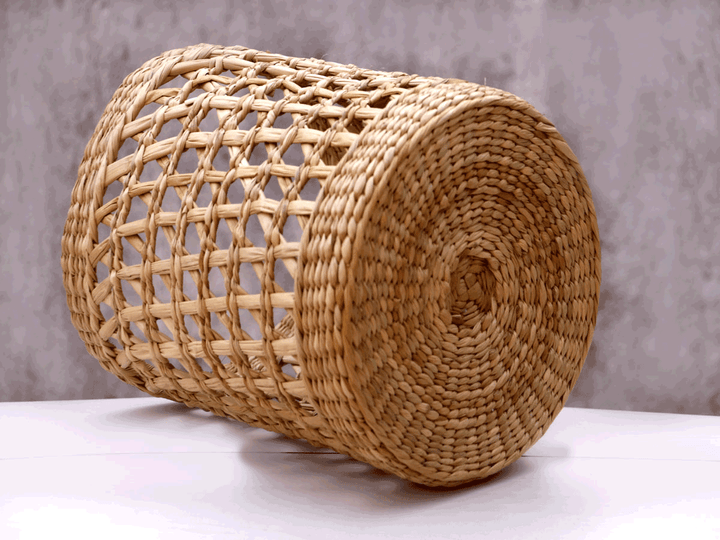 Each Tecksoi Round Basket is meticulously handwoven by skilled artisans who have inherited the traditional craft of Madur Kathi weaving. The natural reed grass (Madur Kathi) is carefully harvested, dried, and woven into strong, durable baskets that carry the warmth of handmade artistry.