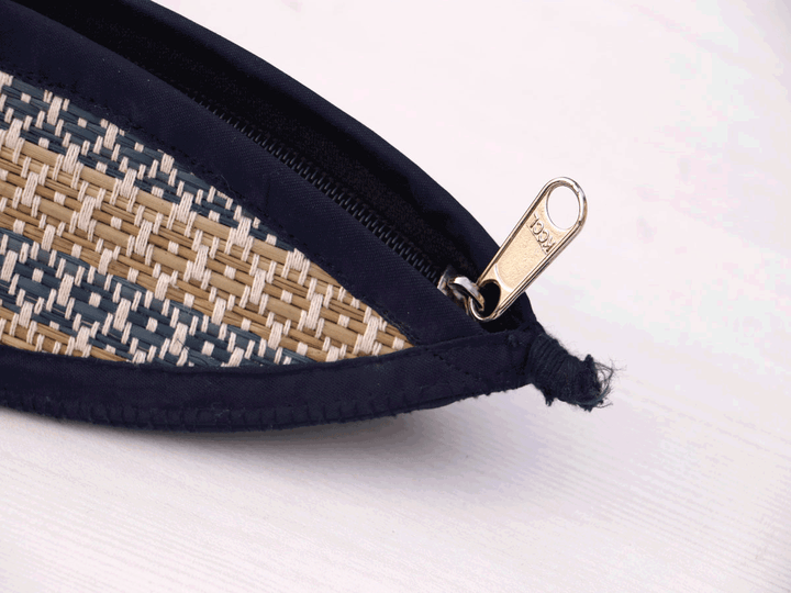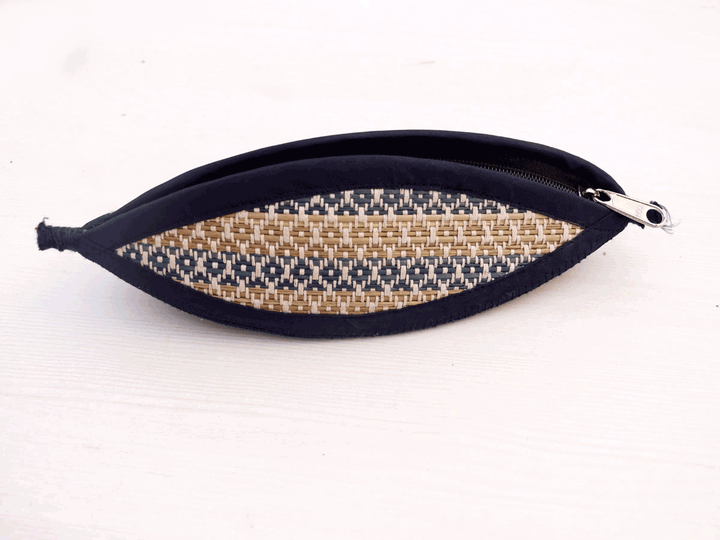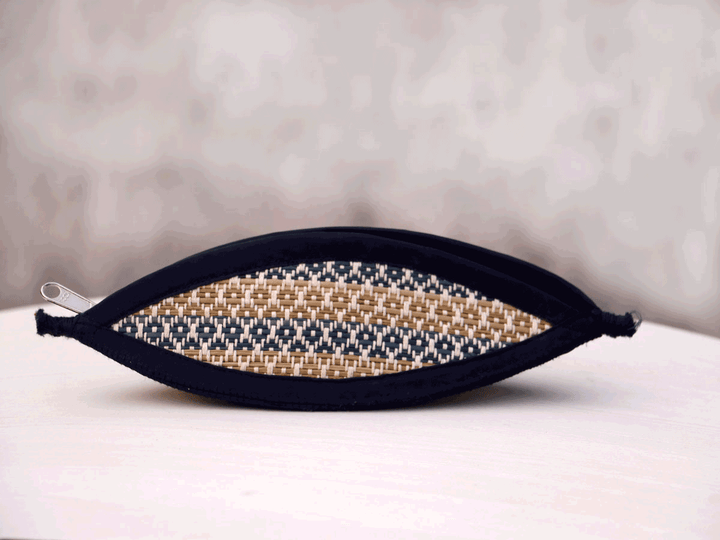 Every Tecksoi Madur Kathi Pencil Bag is carefully handwoven by skilled artisans from Bengal, preserving centuries-old techniques of Madur Kathi weaving. Each bag is unique, reflecting the natural variations in texture and pattern that make every piece a one-of-a-kind accessory.