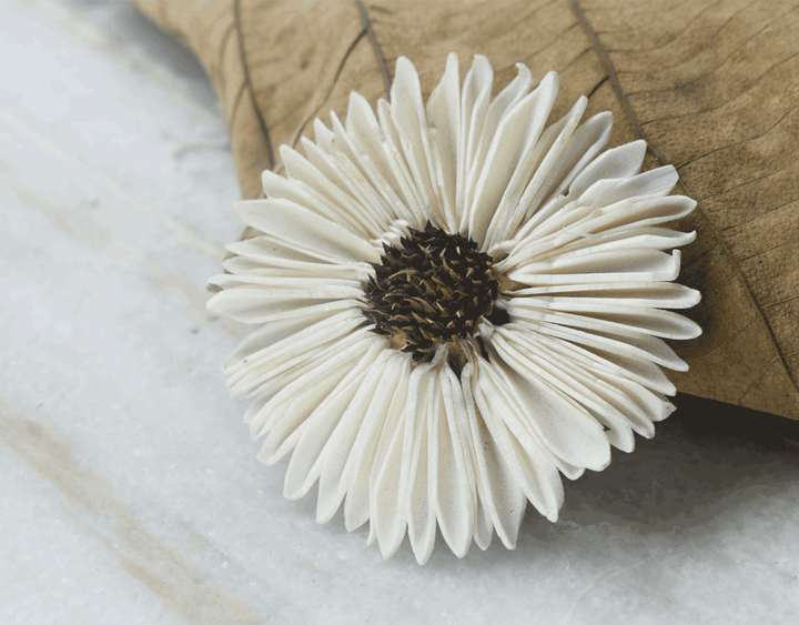 Made from 100% natural sola wood, this everlasting bloom is lightweight, eco-friendly, and delicately handcrafted by skilled artisans. Its soft ivory petals and bold sunflower center make it an ideal flower for weddings, home décor, gifts, and DIY crafts. Whether displayed alone or arranged in a bouquet, the Sunflower Sola Wood Flower instantly brings a ray of sunshine into any space.