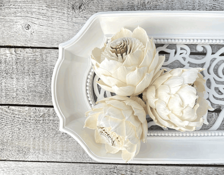While naturally ivory, these flowers can be hand-dyed into bold mustard shades or other colors of your choice. Add fragrance with essential oils to make them even more enchanting.