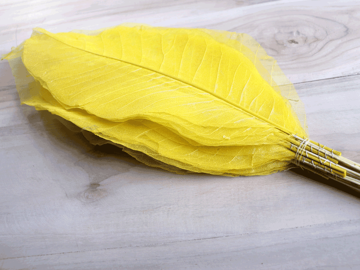 Tecksoi Yellow Skeleton Long Leaf With Stem | 100% Natural | Eco Friendly | Premium Quality | Pack Of 12