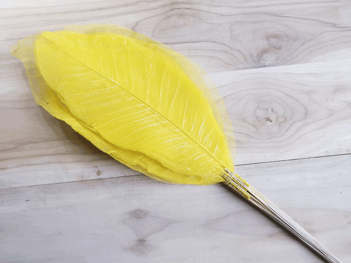 Brighten up your décor with the Tecksoi Yellow Skeleton Long Leaf With Stem, a stunning blend of natural beauty and premium craftsmanship. Made from 100% natural leaves, each piece is carefully treated to preserve its intricate skeletal structure while adding a vibrant yellow finish. Perfect for creating eye-catching floral arrangements, wedding décor, seasonal displays, DIY crafts, and eco-friendly home styling.
